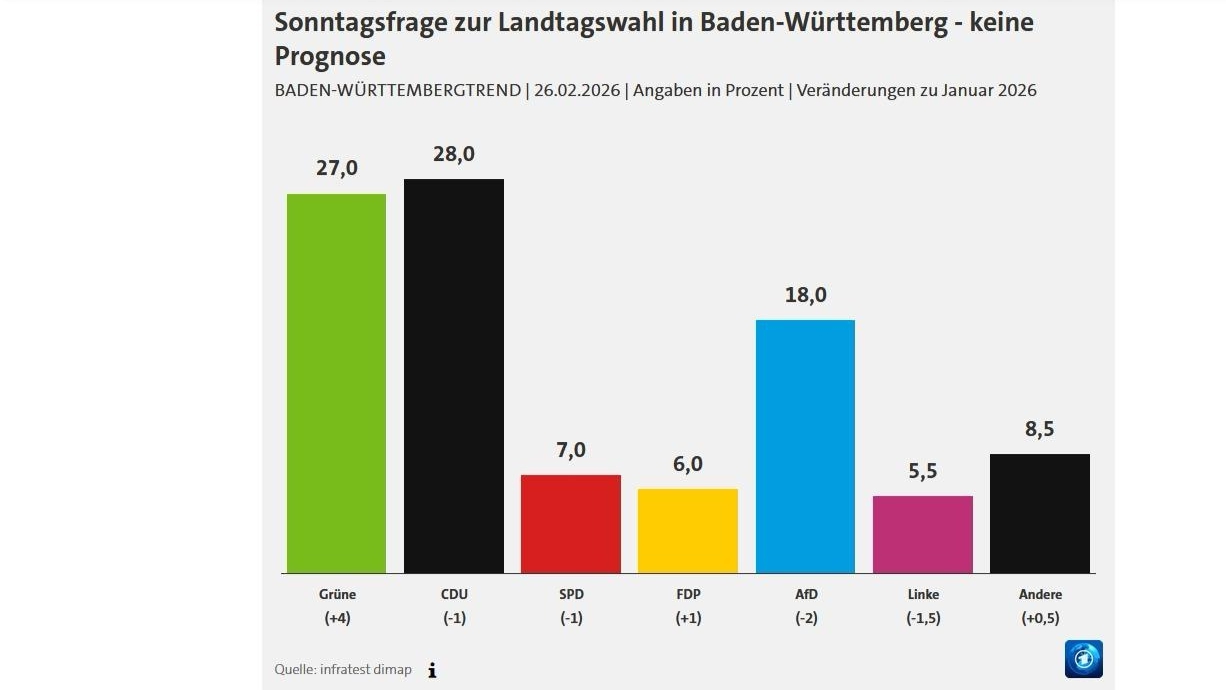 Wir Grüne holen in Baden-Württemberg kräftig auf: 27 Prozent, vier Punkte plus. Das ist kein Zufall, sondern das Ergebnis von einem engagierten Wahlkampf, starkem Teamgeist, tollen Landtagskandidat:innen und einem überzeugenden Spitzenkandidaten. Das wird bis zum 8. März noch besser.